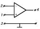 Рис. 6. Структурная схема операционного усилителя: 1 — неинвертирующий вход; 2 — инвертирующий вход; 3 — общий провод; 4 — выход.