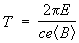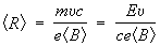 где Е = mc2 — полная релятивистская энергия частицы массы m, равная сумме энергии покоя частицы E0 = m0с2 и её кинетической энергии W (m0 — масса покоя частицы, с — скорость света), е — заряд частицы, <В> — среднее значение индукции магнитного поля; поэтому период обращения связан с энергией частицы соотношением: