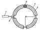 Рис. 9. Схематический разрез бетатрона: 1 — полюсы магнита; 2 — сечение кольцевой вакуумной камеры; 3 — центральный сердечник; 4 — обмотки электромагнита; 5 — ярмо магнита.