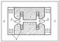 Рис. 7. Схематический разрез магнита ускорителя с сильной фокусировкой: 1 — полюсные наконечники, обеспечивающие сильное изменение магнитного поля В по радиусу; 2 — обмотки электромагнита; 3 — сечение вакуумной камеры.