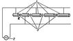 Рис. 10. Схема ускорителя Видероэ с пролётными трубками: 1 — пролётные трубки; 2 — источник переменного напряжения; 3 — область действия электрического поля Е.