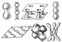 Ферми поверхность, изоэнергетическая поверхность в пространстве квазиимпульсов р, отделяющая область запятых электронных состоянии металла от области, в которой при Т = 0 К электронов нет. За большинство свойств металлов ответственны электроны, расположенные на Ф. п. и в узкой области пространства квазиимпульсов вблизи неё. Это связано с высокой концентрацией электронов проводимости в металле, плотно заполняющих уровни в зоне проводимости (см. Вырожденный газ, Твёрдое тело). Каждый металл характеризуется своей Ф. п., причём формы поверхностей разнообразны (рис.). Для «газа свободных электронов» Ф. п. – сфера. Объём, ограниченный Ф. п. WF (приходящейся на 1 элементарную ячейку в пространстве квазиимпульсов), определяется концентрацией n электронов проводимости в металле: 2WF/(2p