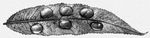 Опухоли у растений: галлы на листе дуба черешчатого, вызываемые орехотворкой Cynips quercusfolii.