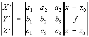 Здесь х, z – плоские координаты точки снимка в системе o1'x1z1 или o2'x2z2, ai, b1 ci – направляющие косинусы, определяемые по углам a, w, m. Для параллельного случая съёмки формулы (1) принимают вид: