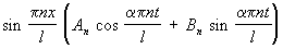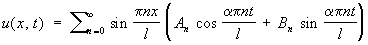 при краевых условиях u (0, t) = u (l, t) = 0 и начальных условиях u (x,0) = f (x); u't (x, 0) = F (x); 0 £ x £ l. Решения этого уравнения, имеющие вид X (x) T (t) и удовлетворяющие краевым условиям, выражаются формулой:
