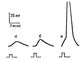 Рис. 6. Генераторные потенциалы: увеличение амплитуды при усилении раздражения рецептора (а — в). При достижении порогового значения (в) генераторный потенциал вызвал в чувствительном нервном волокне потенциал действия.