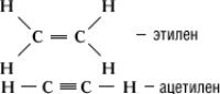Двойная ковалентная связь между атомами углерода имеется в этилене C2H4, а тройная связь — в ацетилене C2H2. Валентные структуры для этих молекул следующие:
