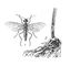 Обыкновенный хлебный пилильщик (1), личинка (2) хлебного пилильщика в повреждённом стебле.