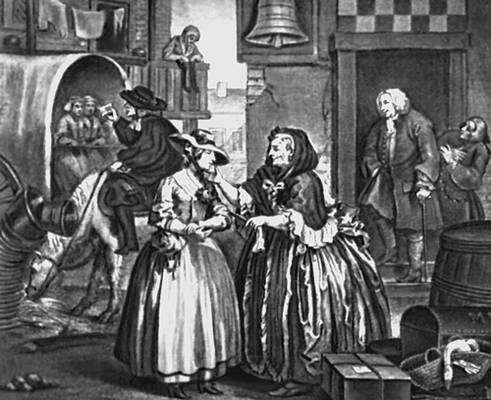Хогарт У. «Прибытие в Лондон» (из серии «Карьера проститутки»). Офорт. 1732.