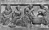 Хорватия. Мастер Радован. «Купание младенца Христа». Рельеф портала собора в Трогире. 1240.