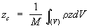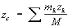 где mк — массы материальных точек, образующих систему, xk, ук, zk — координаты этих точек, М = Smк — масса системы, r — плотность, V — объём. Понятие о Ц. м. отличается от понятия о центре тяжести тем, что последнее имеет смысл только для твёрдого тела, находящегося в однородном поле тяжести; понятие же о Ц. м. не связано ни с каким силовым полем и имеет смысл для любой механической системы. Для твёрдого тела положения Ц. м. и центра тяжести совпадают.