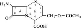 Цефалоспорины, группа близких по химическому строению и биологическим свойствам природных и полусинтетических антибиотиков. Природные Ц. — цефалоспорин С и цефалоспорин N (пенициллин N) выделены в 1945 итал. микробиологом Дж. Бротцу из плесневого гриба рода Cephalosporium. Все Ц., кроме цефалоспорина N, содержат в своей молекуле 7-аминоцефалоспорановую кислоту (7-АЦК), состоящую из b-лактамного (А) и дигидротиазинового (Б) колец: