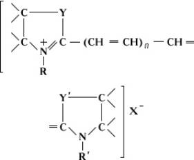 Цианины, органические соединения, содержащие два гетероциклических радикала, соединённых цепью из нечётного числа метиновых групп: