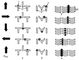 Рис. 4. Схемы перемещения цилиндрических магнитных доменов (1) на пермаллоевых аппликациях (2) Т—I-oбразного (а), Y—I-oбразного (б) и шевронного (V-oбразного) (в) профилей. Нупр — управляющее магнитное поле.