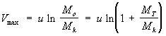 где u — скорость истечения продуктов сгорания из сопла ракетного двигателя; M0 — начальная (стартовая) масса ракеты; Mk — масса ракеты без топлива (в конце работы двигателя на активном участке траектории полёта ракеты); Мт — масса выгоревшего топлива. Отношение Мт/Мк — называется числом Циолковского. Ц. ф. можно пользоваться для приближённых оценок динамических характеристик полёта ракет и в тех случаях, когда силы аэродинамического сопротивления и тяжести невелики по сравнению с реактивной силой. Циолковский обобщил формулу и для случая движения ракеты в однородном поле силы тяжести.