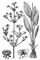 Частуха подорожниковая (верхняя и нижняя части растения); а — плод; б — цветок.