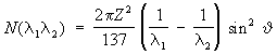 Интенсивность N черенковского излучения на 1 см пути в интервале длин волн от l1 до l2 выражается соотношением: