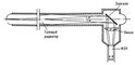 Схема газового порогового черенковского счётчика на 70 Гэв ускорителя Института физики высоких энергий (СССР). Черенковский свет собирается на катод ФЭУ с помощью оптической системы, состоящей из плоского зеркала и кварцевой линзы.
