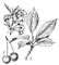 Черешня: 1 — ветка с цветками; 2 — ветка с листьями; 3 — плоды.