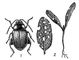 1 — обыкновенная свекловичная блошка; 2 — листья свёклы, поврежденные этой блошкой.