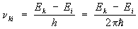 — Планка постоянная). Значение Dnki определяет Ш. с. л. ¾ степень немонохроматичности данной спектральной линии. Контур спектральной линии j(n) [зависимость интенсивности испускания (поглощения) от частоты] обычно имеет максимум при частоте перехода nki или вблизи неё (см. рис.); за Ш. с. л. принимают разность частот, которым соответствует уменьшение интенсивности вдвое (её называют иногда полушириной спектральной линии). Если не учитывать Доплера эффект, Ш. с. л. Dnki определяется суммой ширин уровней энергии Ek и Ei