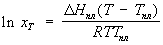 Шредера уравнение, математическое соотношение, выражающее связь между растворимостью кристаллического тела xt при температуре Т (в К), его теплотой плавления DНпл (в кал/моль) и температурой плавления Тпл: