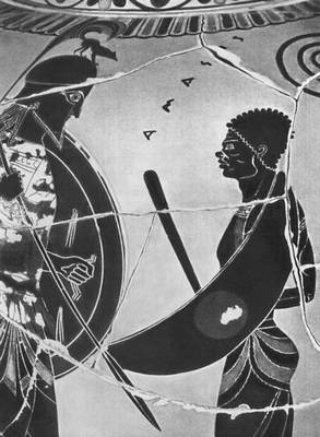 Эксекий. «Мемнон с негром». Фрагмент росписи амфоры. 3-я четв. 6 в. до н. э. Британский музей. Лондон.