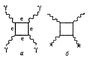 Рис. 1. Диаграмма Фейнмана для рассеяния света на свете: ? + ? ?? + ?(а) в квантовой электродинамике; волнистые линии изображают фотоны, прямые — электроны и позитроны вакуума. Этот процесс наблюдался (б) при рассеянии фотонов на кулоновском поле ядра (помечено крестиками), т. е. на виртуальных фотонах.