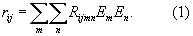 Здесь rij — компонента тензора деформации, Em, En — составляющие электрического поля. Коэффициент Rij называется коэффициентом Э. Число независимых коэффициентов Э. зависит от симметрии кристаллов. Например, для триклинных кристаллов тензоры Э. имеют 36 независимых коэффициентов для изотропных диэлектриков — 2. Величина Rij ~ 10—14—10—10. В поле Е ~ 300 в ×см rij ~ 10—6.