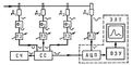 На рис. 1 изображена упрощённая система для исследования спектров излучения. Заряженная частица пересекает детекторы Д1, Д2, Д3 и останавливается в детекторе Д4. Сигналы с Д1, Д2, Д3 через формирователи Ф1, Ф2, Ф3 поступают на схему совпадений СС, которая отбирает события, при которых сигналы на её входы приходят одновременно. Одновременность прихода импульсов обеспечивается согласующимися линиями задержки ЛЗ. Схема совпадения вырабатывает сигнал, который «разрешает» преобразование исследуемого импульса от детектора Д4. Результат преобразования из аналого-цифрового преобразователя АЦП в виде цифрового кода заносится в оперативное запоминающее устройство или ЭВМ. Измеренный амплитудный спектр выводится на экран электроннолучевой трубки ЭЛТ. Эта часть системы, ограниченная пунктиром, представляет собой многоканальный амплитудный анализатор. Скорость счёта на выходе схемы совпадений, фиксируемая счётчиком СЧ, показывает число зарегистрированных событий. Временной отбор сигналов осуществляется схемами совпадений, которые срабатывают от импульсов с определённой длительностью и амплитудой. Схемы совпадения реализуют логическую функцию «И» (логическое умножение), т. е. на её выходе сигнал появляется лишь тогда, когда импульсы на всех входах имеют определённый уровень, называются «единичным». Если на один из входов схемы совпадения подать сигнал с инвертированной полярностью, она превращается в схему антисовпадений. В современных схемах совпадений и антисовпадений используются стандартные интегральные схемы (рис. 2).