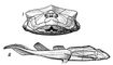 Ботриолепис (Bothriolepis canadensis, реконструкция): 1 — вид спереди; 2 — вид сбоку.