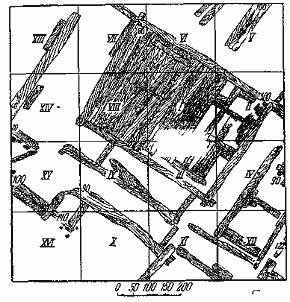 Рис. 39б Сруб дома и прилегающие строения в раскопе № 6