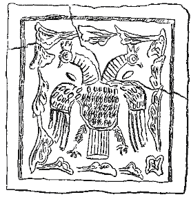Раскоп № 6 разбит на Луговой набережной р. Вологды. Сначала был заложен шурф, который по мере выявления построек расширялся По снятии верхнего слоя стал попадаться строительный мусор со щепой (до глубины 0,8 м). Здесь найден обломок красного неполивного изразца хорошей работы с рельефом, выполненным в форме; в дальнейшем были найдены и другие его части (рис. 40). По форме он квадратный (13Х 13 см) с румпой, сходящей на конус. Аналогичный ему, но менее совершенной выработки найден в районе Тушинского лагеря и опубликован А. В. Филипповым1[1 А. В. Филиппов. Древнерусские изразцы. М.,1938, № 63]. Другие подобные изразцы, опубликованные тем же автором, не имеют даты. Лощеная керамика также встречается на этой глубине, поэтому возможно датировать изразец не ранее конца XVI в.