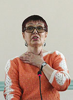 Еще одним подарком для всех пришедших на показ фильма стало выступление барда и баянистки Татьяны Коротковой. Именно ее песня звучит в конце фильма «Мать России целой — деревушка». Ее и еще несколько песен по просьбе слушателей она исполнила и в зале библиотеки.