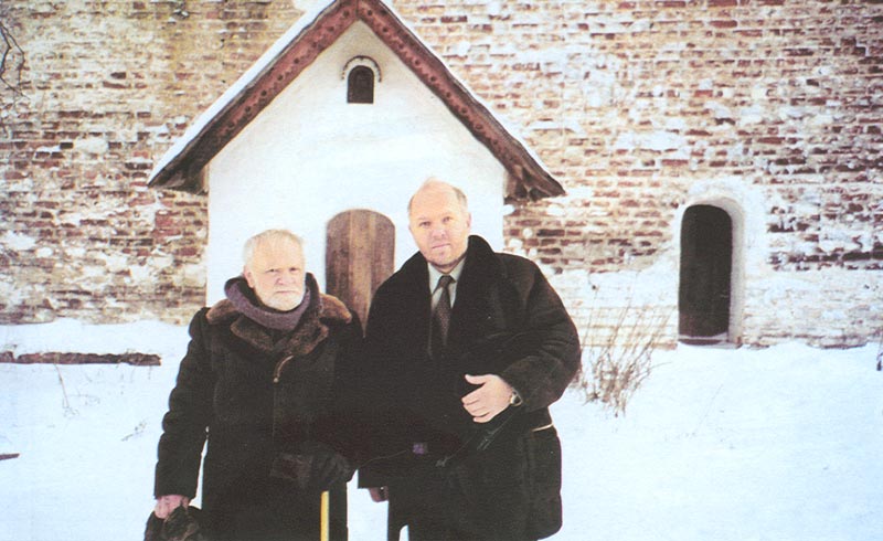 Белов и А. Грешневиков у кельи преподобного Иринарха |