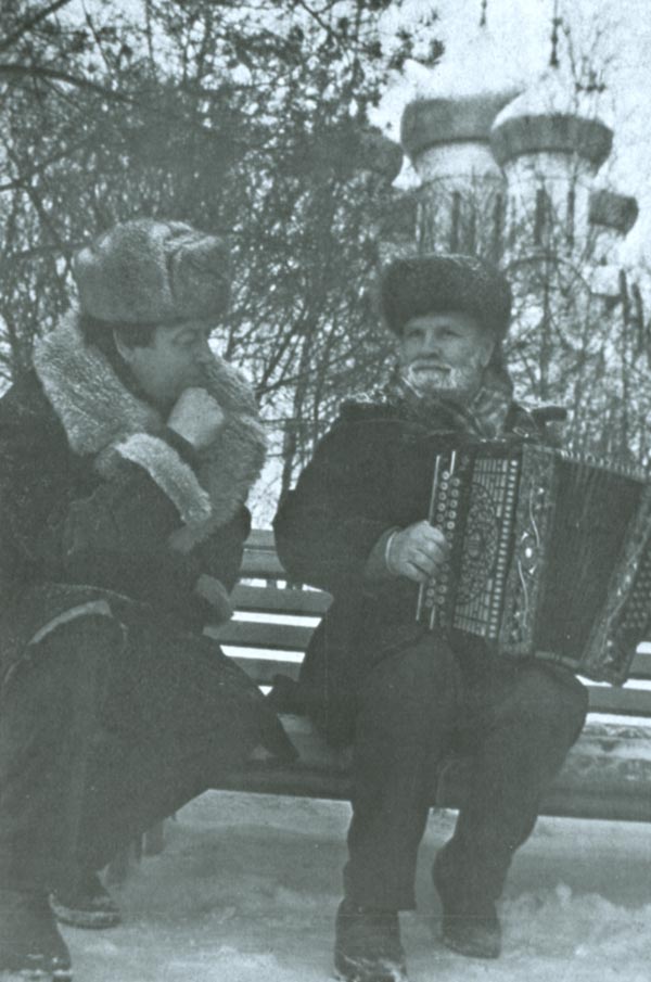У Кремлевской стены с ведущим телепрограммы "Играй, гармонь" Г. Заволокиным |