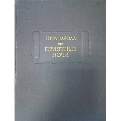 Джованфранческо Страпароле принадлежит одно из самых заметных мест среди итальянских новеллистов XVI века. Последователь Боккаччо, как и многие его современники, Страпарола строит свою книгу по модели «Декамерона», а также заимствует у великого флорентийца ряд сюжетов, мотивов, ситуаций. Страпарола живо откликается на запросы своей эпохи: это было время, когда с веселым и беззаботным смехом была преодолена и отброшена аскетическая и лицемерная религиозная мораль, и человек предстал в литературе и искусстве во всем многообразии и неприкрашенности своего земного бытия. Состояние: Хорошее. (Библиотечные штампы погашены)