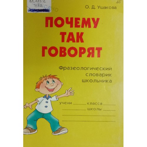Книга «Почему так говорят: фразеологический словарик школьника» О. Д. Ушаковой представляет собой сборник фразеологизмов, объясняющих их происхождение и значение. Она предназначена для школьников, интересующихся русским языком, и помогает лучше понять культурные и исторические аспекты русской речи.Состояние: Хорошее. Мягкая обложка. (Библиотечные штампы погашены)(100.00) (Наука и образование. Русский язык и литература) (14х22) (105 гр.)