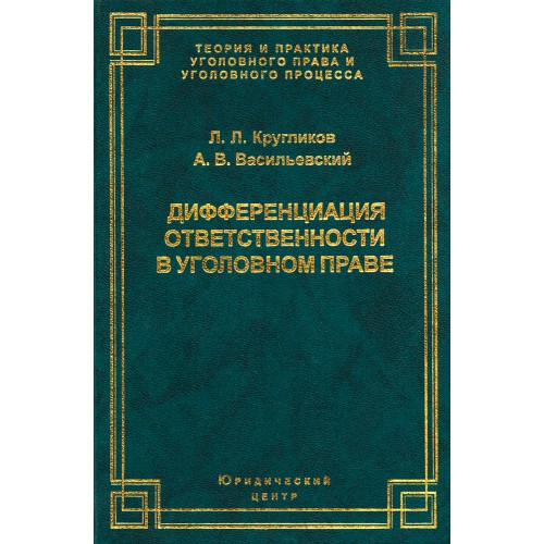 Кругликов Л. Л., Васильевский А. В. Дифференциация ответственности в уголовном праве. – СПб.: Изд-во « Юридический центр Пресс», 2002. – 300 с.