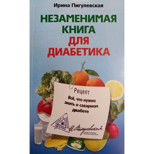 Пигулевская И. С. Незаменимая книга для диабетика: всё, что нужно знать о сахарном диабете. – Москва: Центрполиграф, 2010. – 189 с. / ISBN 978- 5-9524-4753-0