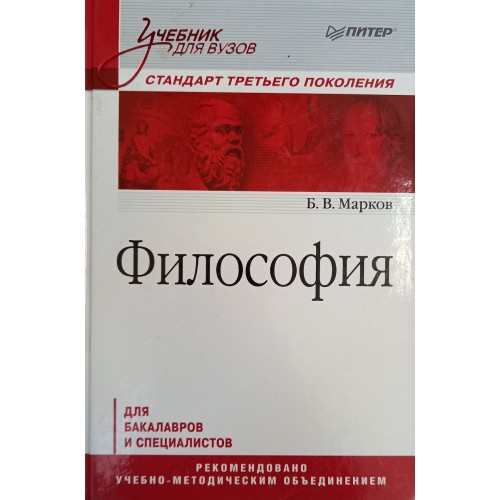 Марков Б. В. Философия: учебник для вузов. Стандарт третьего поколения. – Санкт-Петербург: Питер, 2014. – 432 с.: ил. – ISBN 978-5-496-00096-3