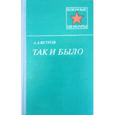 Ветров А. А. Так и было.- М. : Воениздат, 1982.- 159 с.