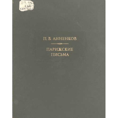 Анненков П. В. Парижские письма / П. В. Анненков; изд. подгот. И. Н. Конобеевская; Акад. наук СССР. - Москва : Наука, 1983. - 607 с. - (Литературные памятники)