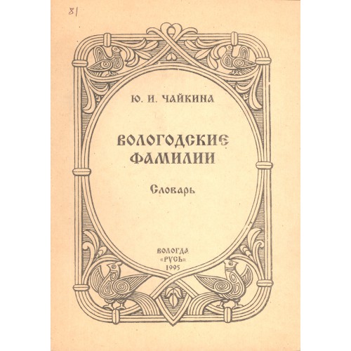 Чайкина Ю. И. Вологодские фамилии. - Вологда: Русь, 1995. - 121 с.