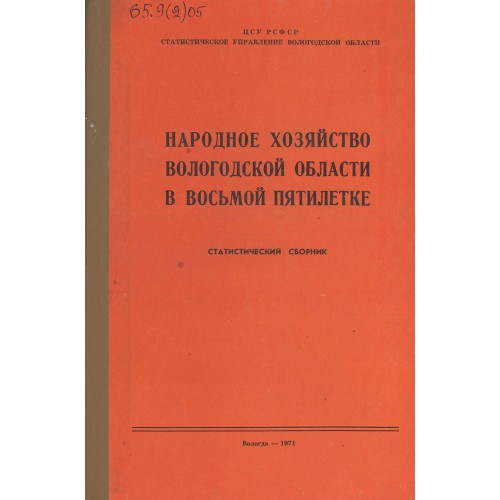Народное хозяйство Вологодской области в восьмой пятилетке : статистический сборник / [общ. ред. А. П. Теремова] ; ЦСУ РСФСР, Статистическое управление Вологодской области. – Вологда : Северо-Западное книжное издательств, 1971. – 187, [1] с.