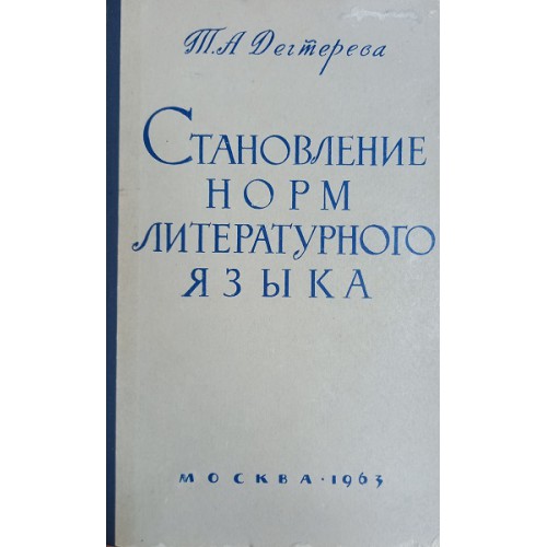 Дегтерева Т. А. Становление норм литературного языка. – Москва: Издательство ВПШ и АОН, 1963. – 184 с.