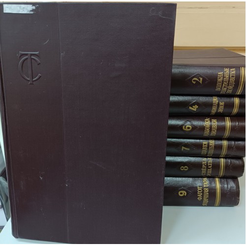 Комплект 7 томов. (нет 3 и 5 томов)Том 1. Абажуры – Волконскоит. – 1014 стб., [36] л. ил.Том 2. Волокна текстильные – Зюйдвестка. – 1014 стб., [33] л. ил.Том 4. Комбинация – Ленок. – 1086 стб., [18] л. ил.Том 6. Набойка – Пиявки. – 1108 стб., [19] л. ил.Том 7. Плавки – Свекла. – 1078 стб., [20] л. ил.Том 8. Сверла – Ушаты молочные. – 1214 стб., [16] л. ил.Том 9. Фагот – Ящичная тара и дополнительные статьи. – 1734 стб., [19] л. ил.В словаре представлены все необходимые сведения о товарах широкого потребления, изготовляемых отечественной промышленностью и поступающих в продажу. В статьях о продовольственных товарах дается описание всех видов и разновидностей продовольственных товаров, их вкусовых и пищевых свойствах, рецептура и химический состав, особенности использования, технология производства, требования к качеству и другие данные. В статьях о промышленных товарах описаны товары широкого потребления всех основных наименований, марок и ряда артикулов. В необходимых случаях приводится назначение товара, применяемые материалы, особенности конструкции, правила пользования, технология производства и т.д. По всем товарам даются сведения об их потребительских свойствах, правилах хранения, упаковки, маркировки, транспортировании. Помещены также статьи по основным вопросам организации и техники торговли. Статьи иллюстрируются большим количеством рисунков, фотографий и схем.Состояние: Хорошее. (Библиотечные штампы погашены)(комплект 1200.00) (Техническая литература) (18х26) (9204 гр.)