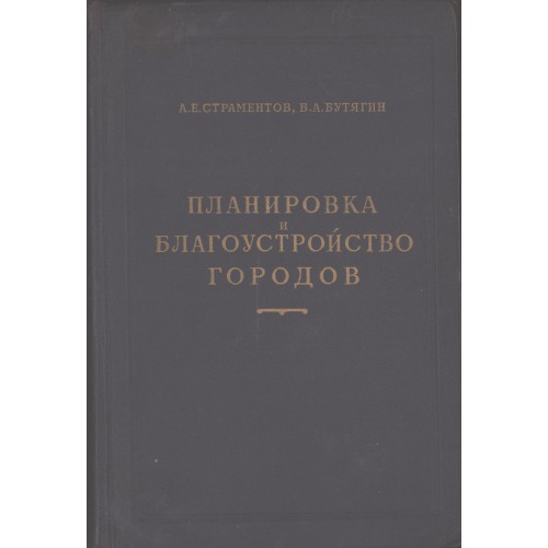 Страментов А. Е. Планировка и благоустройство городов: учебное пособие для вузов / А. Е. Страментов, В. А. Бутягин. – Москва: Издательство Министерства коммунального хозяйства РСФСР, 1956. – 427 с.: ил.