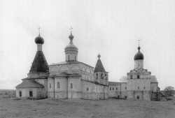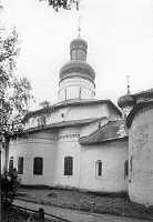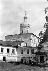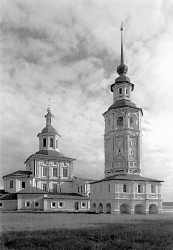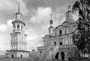 Founded in 1554 by Feodosii Sumorin, the monastery consisted entirely of wooden structures until the latter part of the eighteenth century. Among its surviving structures, the most significant is the palatial Ascension Cathedral, built and expanded over a period of three decades, from 1796 to 1825. In its imposing late classical forms, now abandoned and with its interior stripped, this church is reminiscent of ruined nineteenth-century mansions in the southern part of the United States. Under current circumstances, the restoration of these monumental structures is very much in question.