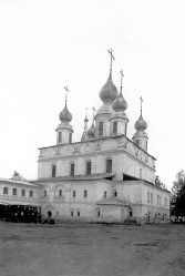 The first recorded reference to Totma is 1137-ten years earlier than Moscow. During the sixteenth century it became a major center of salt refining, which brought considerable wealth to local monasteries and to a branch of the Stroganov family, who rapidly gained control of this enterprise. In addition Totma's prosperity increased not only through its position on the trading route to the White Sea, but also through trade with Siberia. Both Ivan the Terrible and Peter the Great visited Totma, which provides further evidence of its importance to the commerce of the Russian north. Certain local merchants showed remarkable enterprise in exploring distant terrain, and by the end of the eighteenth century, a number of expeditions to Alaska were funded in Totma. Indeed, a Totma resident named Ivan Kuskov founded California's Fort Ross in 1812 (22). His log-house in Totma has been converted into a modest, but attractive museum.